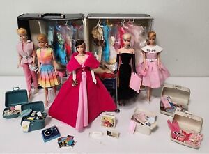 Vtg LOT Swirl Ponytail Barbies w/Original Black Tag Clothes Accessories & Case