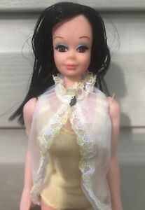eBay I cannot ship internationally at this time. Please view all of the images and ask all questions before purchasing as this doll is being sold as-is. Let me know if you need additional images of any specific angles or light settings. Up for your consideration is a used all-original 1970s PJ clone named LAURIE with side part midnight black hair. She is wearing her original yellow swimsuit and coverup. This doll has joined straight legs (they both move when one legs is lifted), twist waist and a hard head. These dolls had their own line of "Laurie fashions" and the packaging on those says that they are for all 11.5" dolls, however, she is actually approximately 10.5" inches tall. So, she's a bit smaller scale than Mattel's PJ. Some of Laurie's fashions were sold via JCPenney catalog in the early 1970s for all 11.5" fashion dolls. Condition: The swimsuit and coverup are in good condition and don't appear to have ever been removed. (The material on the cover-up still has that crisp feel to it) The metal snaps have corroded over time.I do see some dirt marks and small greenish stains on various parts of her body. There are a bunch of faint browinsh marks on her head (mostly the forehead area) that look like they could be dirt marks or possibly light age spots. (see images) I did not attempt to clean her and will leave that up to the new owner. There is some excess soft vinyl on one of her hands. (Condition: Pre-Owned)
