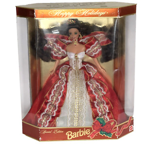 eBay Brand new in box. Extremely RARE Mattel Vintage Special Edition Happy Holidays 1997 Barbie Doll Recalled Green Eyes. “This Barbie is rare because when it was released the manufacturers made a mistake.The color of the eyes on the doll and the box do not match.The Barbie's eyes are green on the doll and blue on the back of box.This was an error that was quickly noted and recalled ”Vintage Christmas Special Edition Bruinette # 17832Barbie have been stored away in a pet and smoke free environment since 1998 so please see our photos for the exact item and condition.We offer a combined shipping discount for multiple orders so PLEASE CHECK OUT OUR OTHER LISTING FOR MORE HOLIDAY BARBIES.Same Day Shipping so expect a quick & FREE delivery.Thanks for shopping with us and best regards to you! (Condition: Brand New)