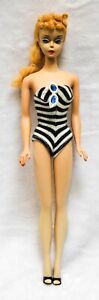 eBay BARBIES | TRANSFORMERS | ACTION FIGURES | MEN'S CLOTHING | WOMEN'S CLOTHING Vintage Ponytail Barbie #3 Blonde W/ Blue Eyeliner Zebra Suit Sunglasses Heels BARBIES | TRANSFORMERS | ACTION FIGURES | MEN'S CLOTHING | WOMEN'S CLOTHING COME EXPLORE OUR STORE! RED STICK RETRO Vintage Ponytail Barbie #3 Blonde W/ Blue Eyeliner Zebra Suit Sunglasses Heels DESCRIPTION This vintage Ponytail Barbie #3 is a must-have for collectors and doll enthusiasts alike. With her curly blonde hair, blue eyes, and zebra-patterned swimsuit, she exudes classic style and charm. This 11-inch beauty was manufactured in Japan in 1960 and is an original piece from the Mattel product line. The set includes the doll, swimsuit, sunglasses, and shoes, making it perfect for all occasions. This Barbie is an antique and is in excellent condition. Her light complexion and Caucasian ethnicity make her a wonderful addition to any collection. In good condition, no green ear, no haircut, she has all of her fingers & toes, her makeup is in very good condition. She has a couple of discoloration marks on her legs. Her swimsuit is in great condition, as well as her sunglasses & her heels are marked JAPAN. See pictures for details PRODUCT SPECIFICATIONS Unit of Sale: Single Unit Antique: Yes Doll Hair Color: Blonde Doll Hair Type: Curly Number of Pieces: 4 Occasion: All Occasions Year Manufactured: 1960 Vintage: Yes Doll Size: 11 in Personalize: No Doll Gender: Girl Doll Original Licensed Reproduction: Original ship every day Monday - Friday. Most orders will be shipped out via USPS Ground Advantage. We take pride in packaging our items to ensure a safe travel! If you are considering purchasing multiple items, please ask about combined shipping for your order. Payment is due upon purchase. Orders left unpaid for 24 hours will receive a reminder to pay. If no payment or contact is made within 48 hours of purchase, the order will be canceled.We hope you will love your purchase, however if you need to return it, we have a 30 day return policy.We hope you will love your purchase, however if you need to return it, we have a 60 day return policy.We hope you will love your purchase, however if you need to return it, we have a 60 day return policy.We hope you will love your purchase, however if you need to return it, we have a 60 day return policy.We hope you will love your purchase, however if you need to return it, we have a 60 day return policy.We hope you will love your purchase, however if you need to return it, we have a 60 day return policy. FEATURED PRODUCTS YOU MIGHT BE INTERESTED IN Vintage Brunette Bubblecut Barbie Doll In It's Cold Outside Red Coat 1960s $74.95 Vintage Barbie Ken Doll Blonde Flocked Hair In Swimsuit Sandals Towel 1960s $34.95 Vintage White Ginger Bubblecut Barbie Doll Turquoise Eyes In Red Swimsuit $149.95 Vintage Malibu Barbie Doll in Original Blue Swimsuit & Towel Korea 1971 Mattel $34.95 Vintage White Ginger Bubble Cut Barbie Doll W/ Green Eyeliner In Original Suit $199.95 Vintage Midge Doll #860 Blonde Straight Leg W/Box Stand Booklet 1962 Mattel $114.95 Vintage Barbie Midge Brunette #860 W/Original Box Stand & Booklet 1962 Mattel $124.95 Barbie Sea Holiday Midge Doll #5476 Open Box Mattel 1992 $59.95 Add suggested items to your listings - Check it out on 3Dsellers.com eBay listing template by 3Dsellers.com - Try for Free! (Condition: Pre-Owned)